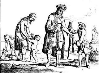 Sua controvertida estatura excede geralmente à dos Europeus: medidos escrupulosamente os mais altos, achou-se que não passavam de 7 pés e 1,25 polegadas (2,17 m); e a comum estatura era de 6,5 até 7 pés (ou seja, entre 2,00 e 2,13 metros). Segundo reflecte Mr. Bougainville não é tão notável seu talhe como sua corpulência, que em alguns chegava a 4 pés e 4 polegadas (1,35m) na circunferência do peito; porém seus pés e mãos não correspondem ao membrudo das outras partes (!) Todos estão cobertos de carne sem poder-se chamar gordos: a tensão de seus músculos manifesta a sua força, e não é desagradável sua figura (...)Uma estatura que (nos medidos) variava entre 2 e 2,20 metros torna claro que a imagem da ilustração era bem verosímil, e estávamos em presença de um povo quase gigante, em que Yao Ming seria um indivíduo normal, e não uma excepção. Aliás, recordamos, era isso que dizia Buffon (1774-89):