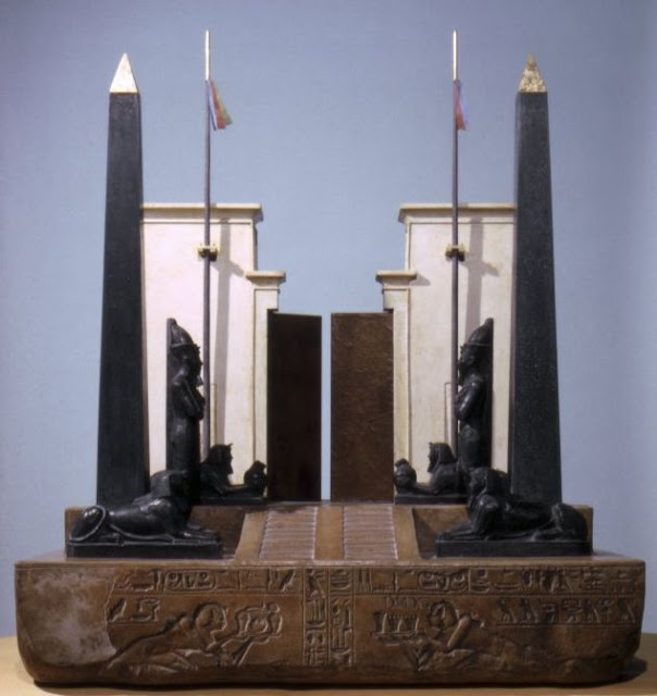 É óbvio que essas colunas, ou obeliscos, semelhantes aos pilares J. e B., são as que sustentam o templo maçônico e, ao mesmo tempo, permitem o acesso ao mesmo e configuram os dois grandes afluentes sapienciais que nutrirão a Ordem: o hermetismo, que assegurará o amparo do deus através da Filosofia, quer dizer do Conhecimento, e o pitagorismo, que dará os elementos aritméticos e geométricos necessários, que reclama o simbolismo construtivo; deve-se considerar que ambas as correntes são direta ou indiretamente de origem egípcia. Igualmente que essas duas colunas, são as pernas da Mãe loja, pelas quais é parido o Neófito, quer dizer pela sabedoria de Hermes, o grande iniciador, e por Pitágoras, o instrutor gnóstico.